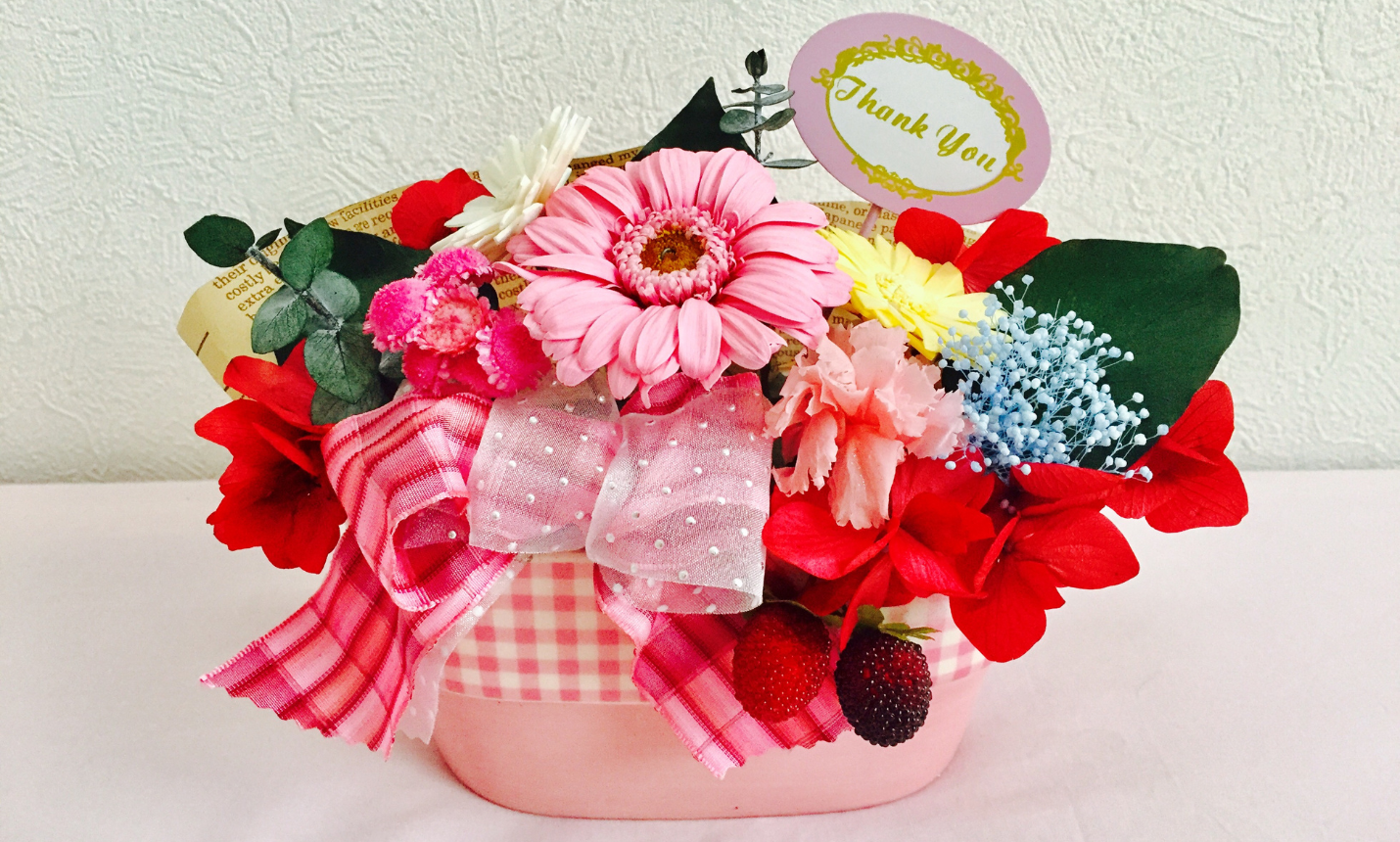- はるひ野チャリティワンデーショップ/プリザ、ドライフラワー母の日アレンジ