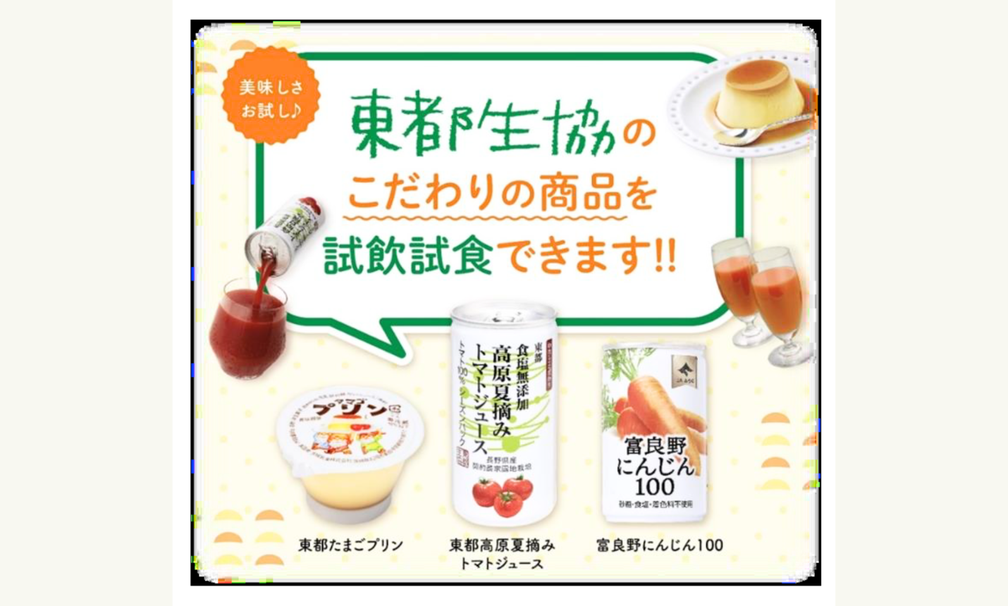 - 東都生活協同組合/プリン・ジュース試飲試食、企業PR