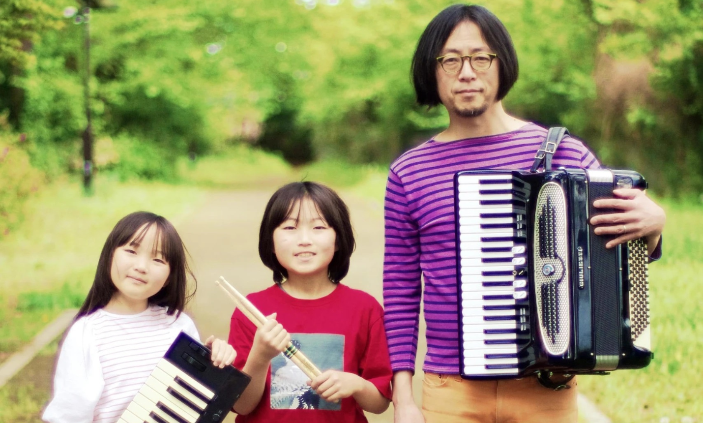 アコーディオン弾き語りmatzoと12歳ドラマー・コマッツォ、妹キーボード・ココマッツォの親子バンド